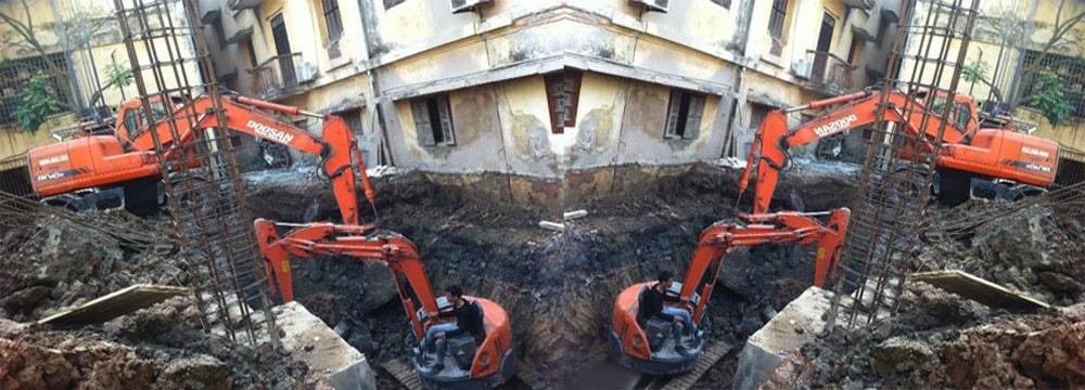 Cho thuê máy xúc bánh xích – bánh lốp | Nhận chở vlxd – đào móng | Ép cọc – phá dỡ nhà – bê tông | Phá dỡ nhà cửa bằng máy chuyên dụng, đào móng nhà bằng máy xúc, hoặc bằng thủ công ( nếu ngõ nhỏ máy xúc không vào được )